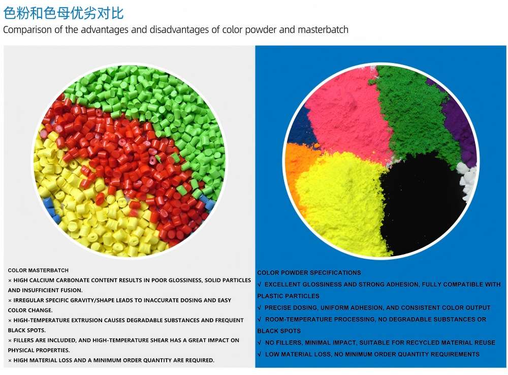 1.Modularer Aufbau: Ermöglicht einen schnellen Farbwechsel in 5 Minuten; Kann mit zusätzlichen Materialien gefüllt werden; Kompatibel mit Pigmenten und Masterbatch, was eine vielseitige Verwendung in einer Maschine ermöglicht.